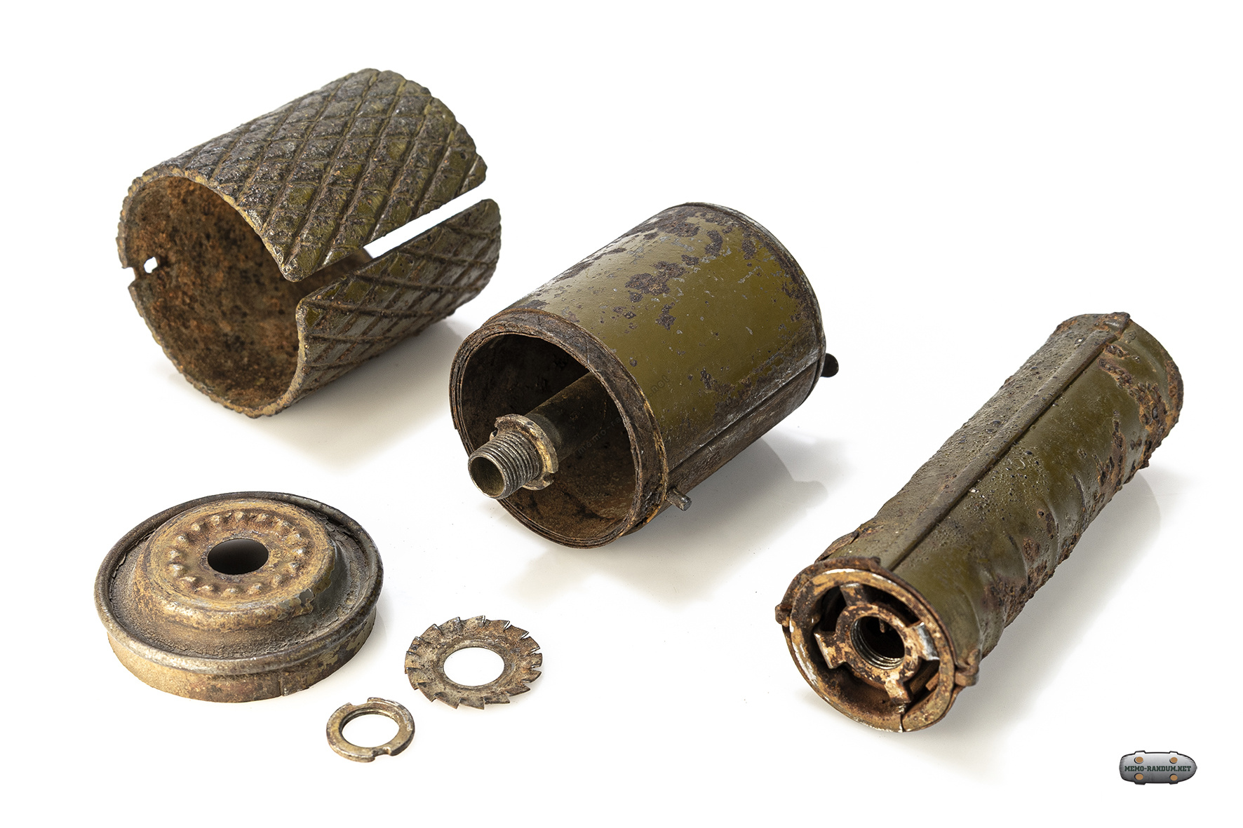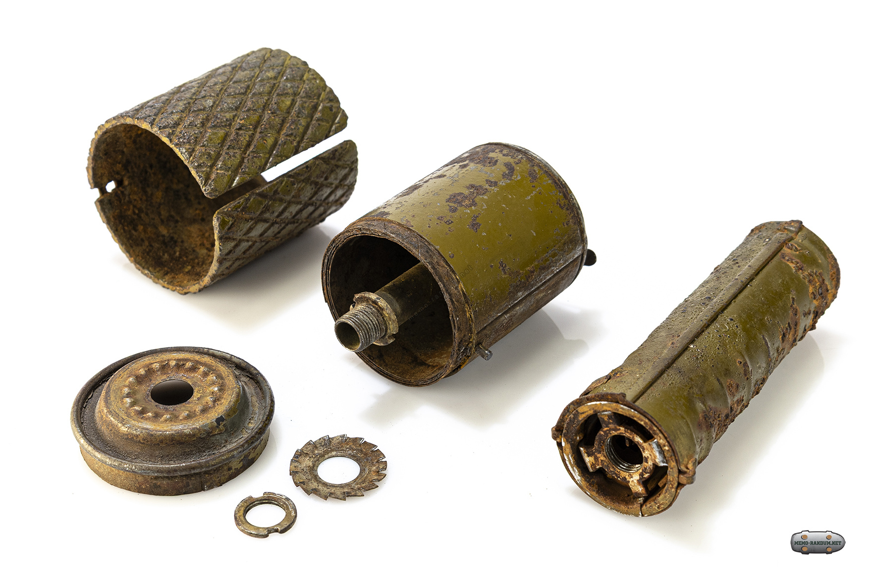 - Запал: Отдельно хранящийся запал, который вставлялся в центральное гнездо корпуса и закрывался специальной задвижкой (сдвижной у ранних моделей или поворотной у поздних) . Время горения запала составляло около 3,5–4 секунд .