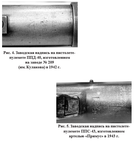 За вторую половину 1942 г. (с 5 июля по 31 декабря) в Ленинграде было изготовлено 10 853 шт. пистолетов-пулеметов ППД-4043. За весь 1942 г. предприятия Ленинграда дали фронту 2692 шт. пулемета Максим, 139 шт. ручных пулеметов ДП, 34 936 шт. пистолетов-пулеметов ППД-40, 620 шт. пистолетов-пулеметов ППС-42, 70 шт. револьверов Наган, 21 699 шт. винтовочных штыков, 386 шт. сигнальных пистолетов44.