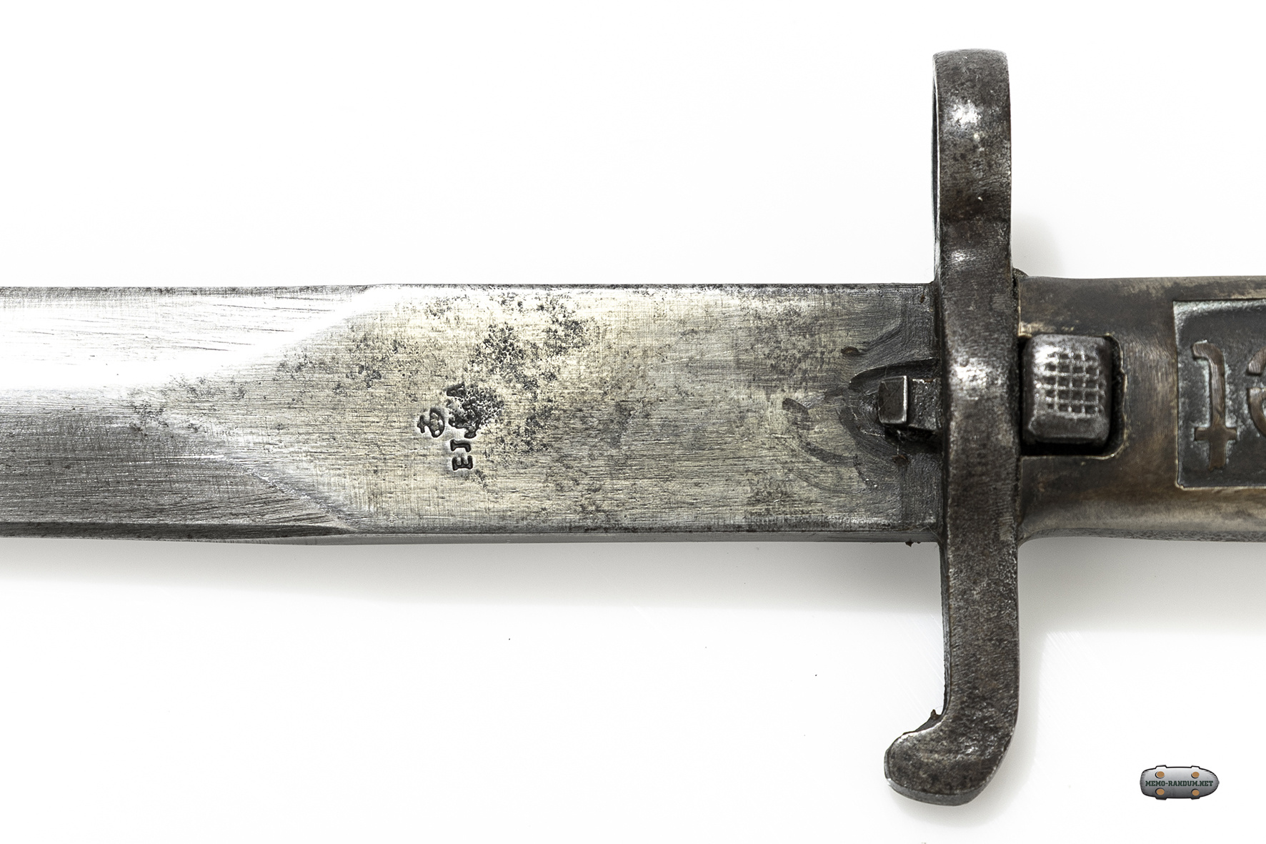 Клинок штыка прямой, обоюдоострый, без долов, выполнен в виде вытянутого ромба в сечении. У основания клинка с одной стороны нанесено клеймо производителя — «E.J.A.B». клеймо шведского оружейного завода в Эскильстуне «Eskilstuna Jernmanufactur AB»;
