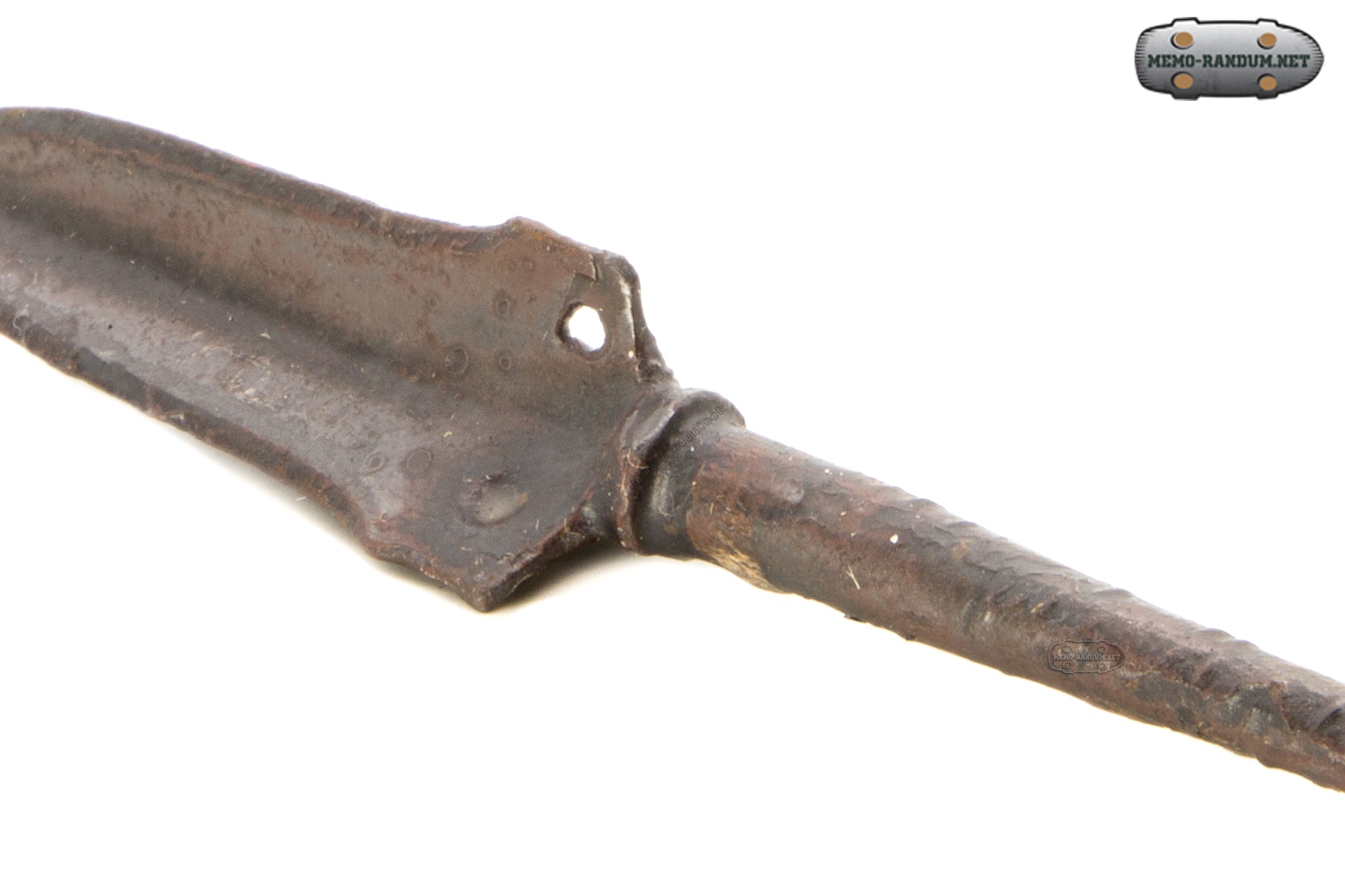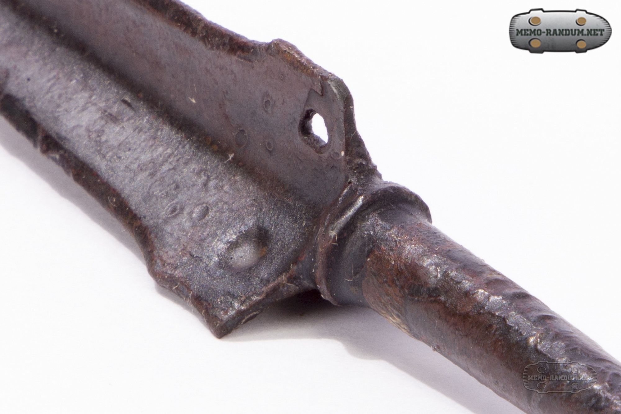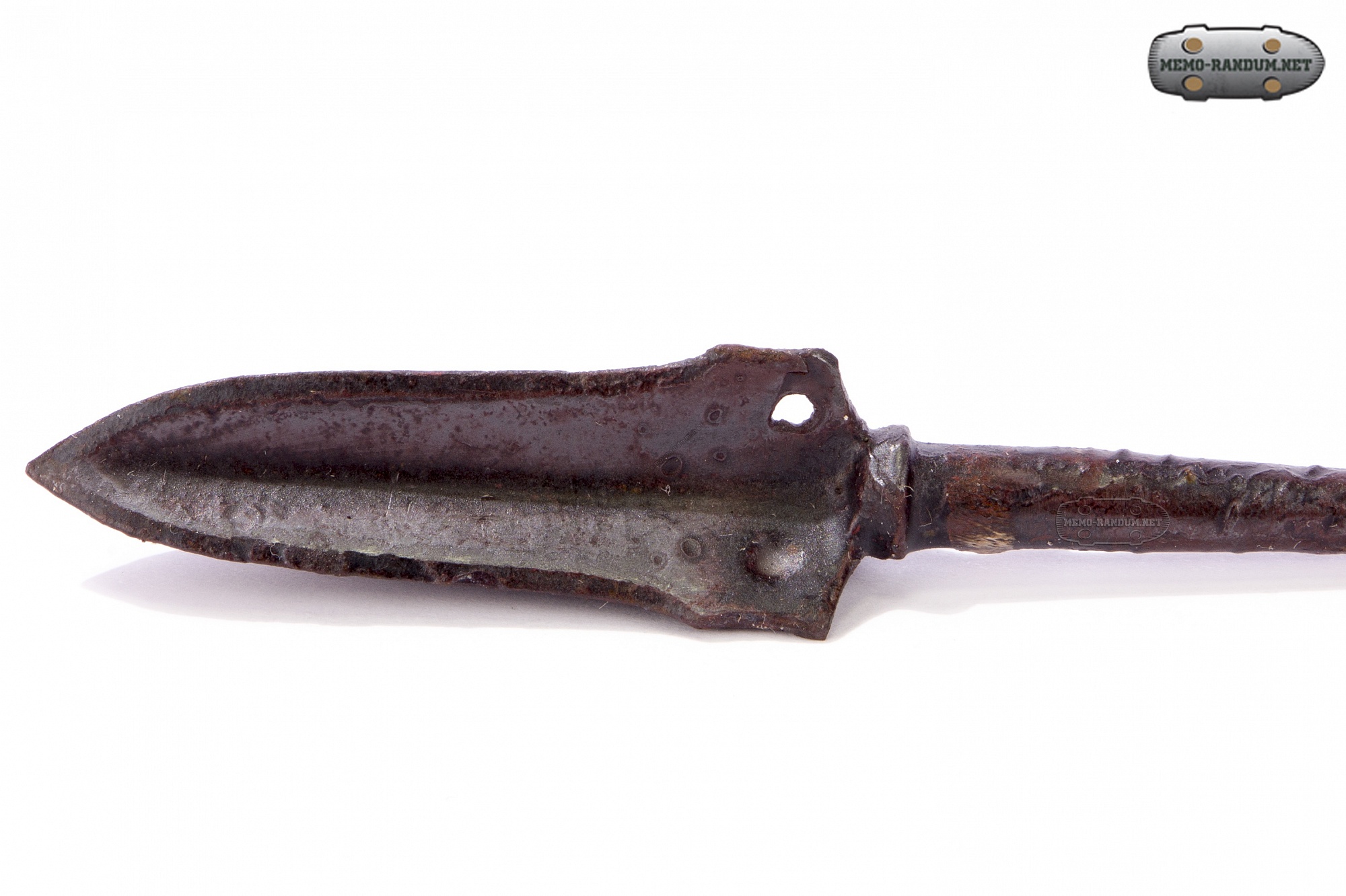 Прорези на лопастях круглые. На черене данного экспоната видны остатки древка.