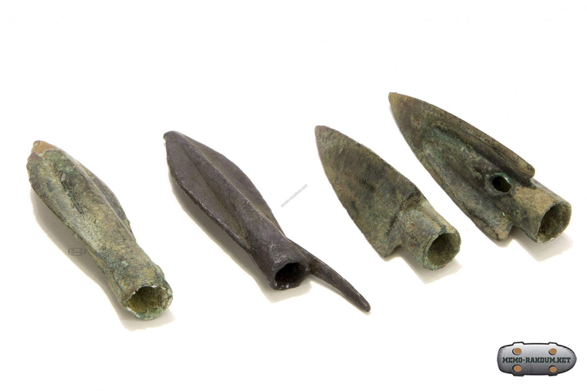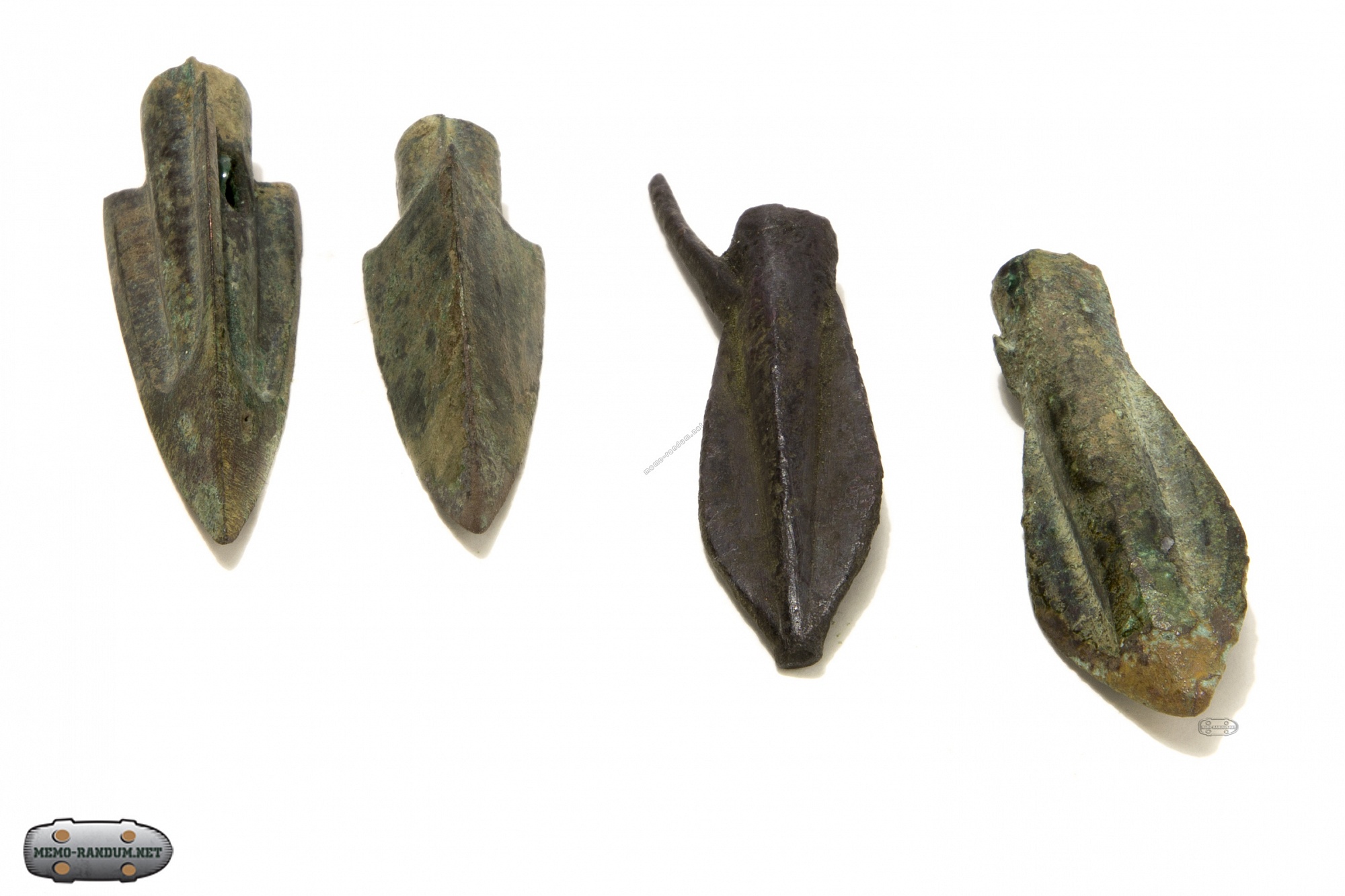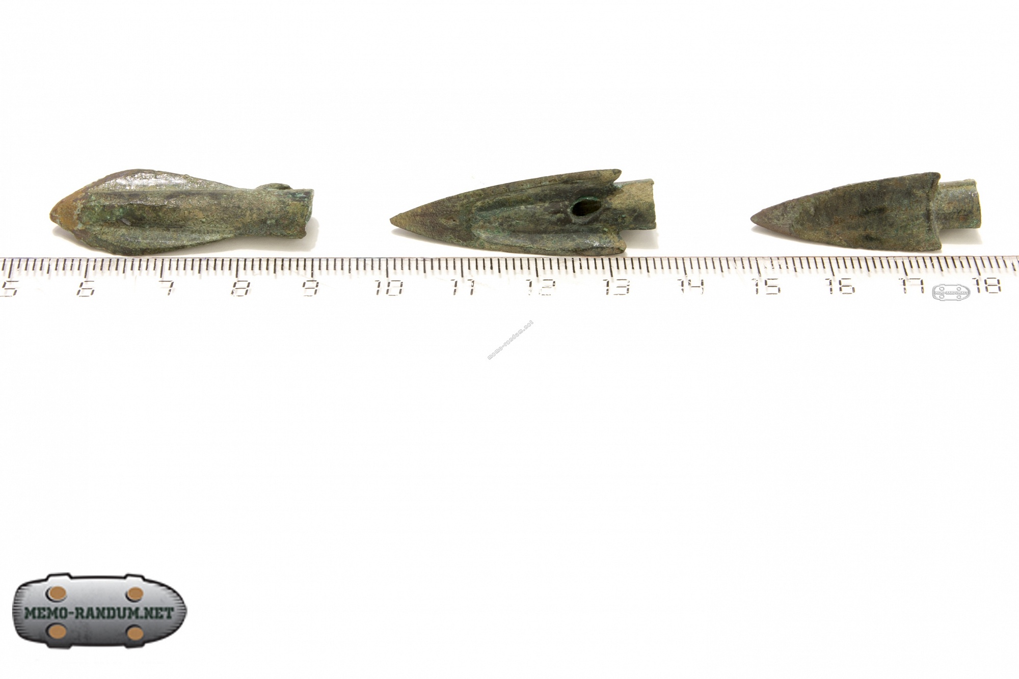 Наконечник с тупоугольным острием. Крылья (стороны) параллельные. на втулке отверстие. шип на втулке отломан, отсутствует.
