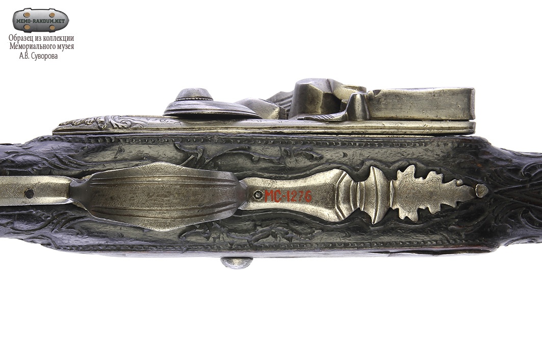 Замок кремневый. На правой щечке замка имеется гравировка в виде орнамента. Шомпол Отсутствует.