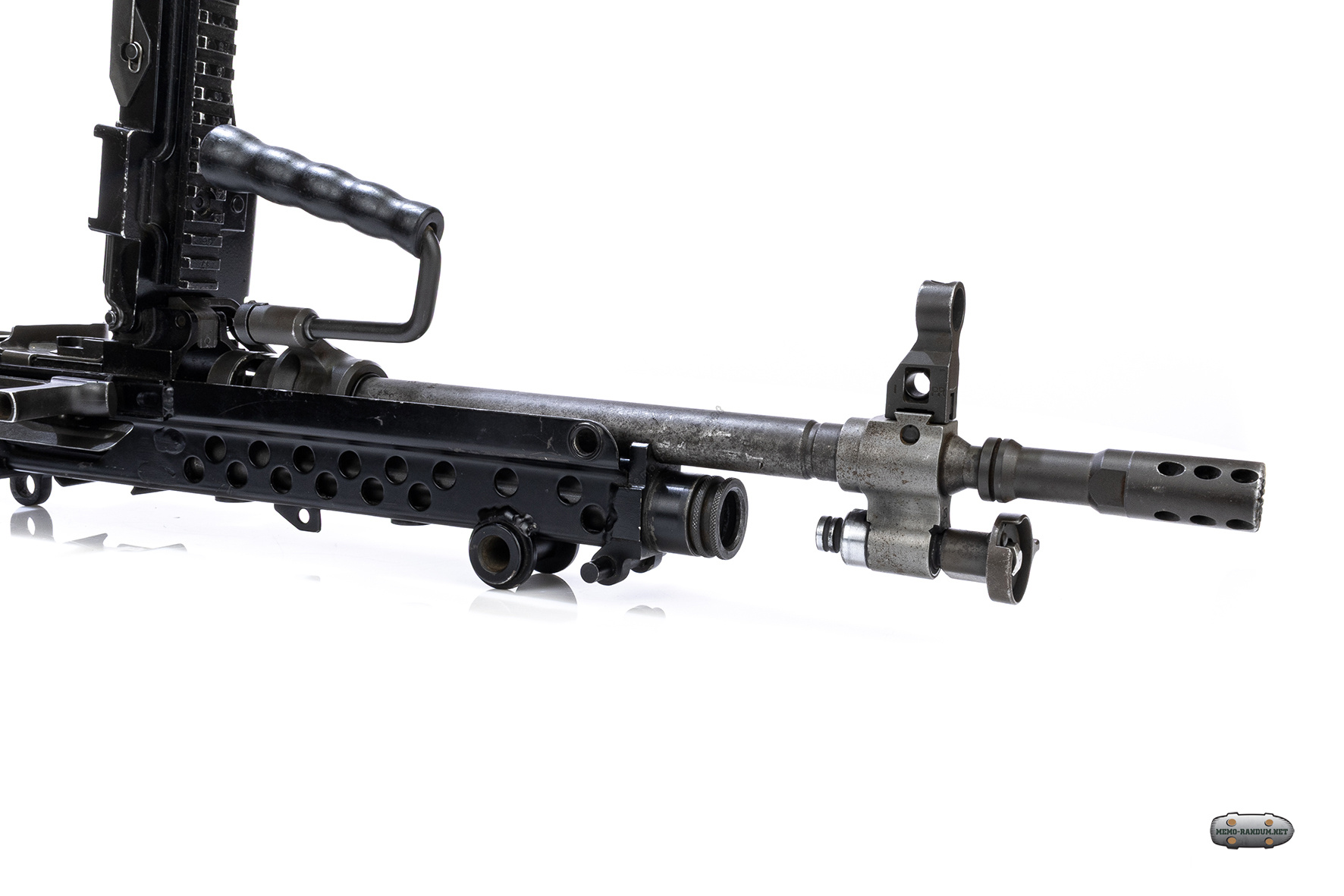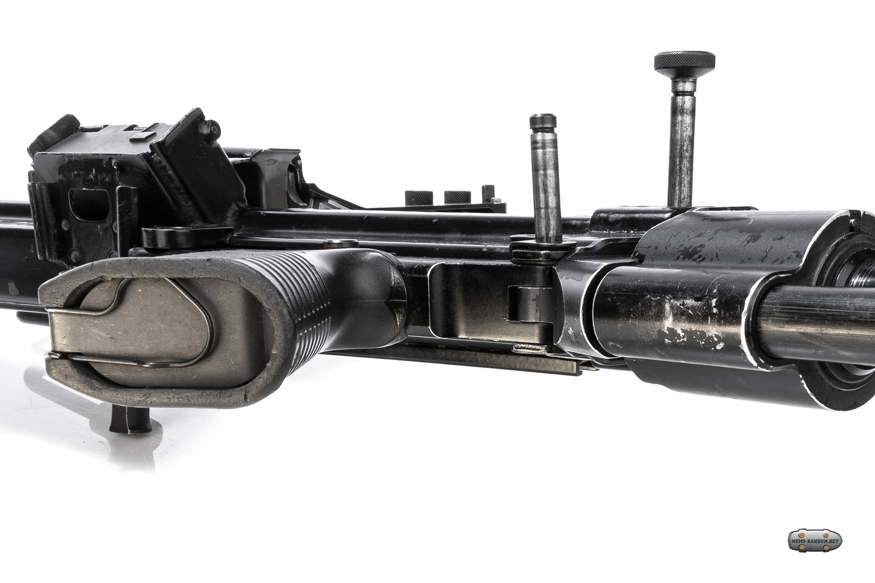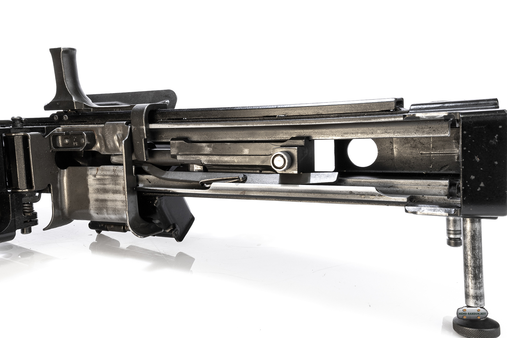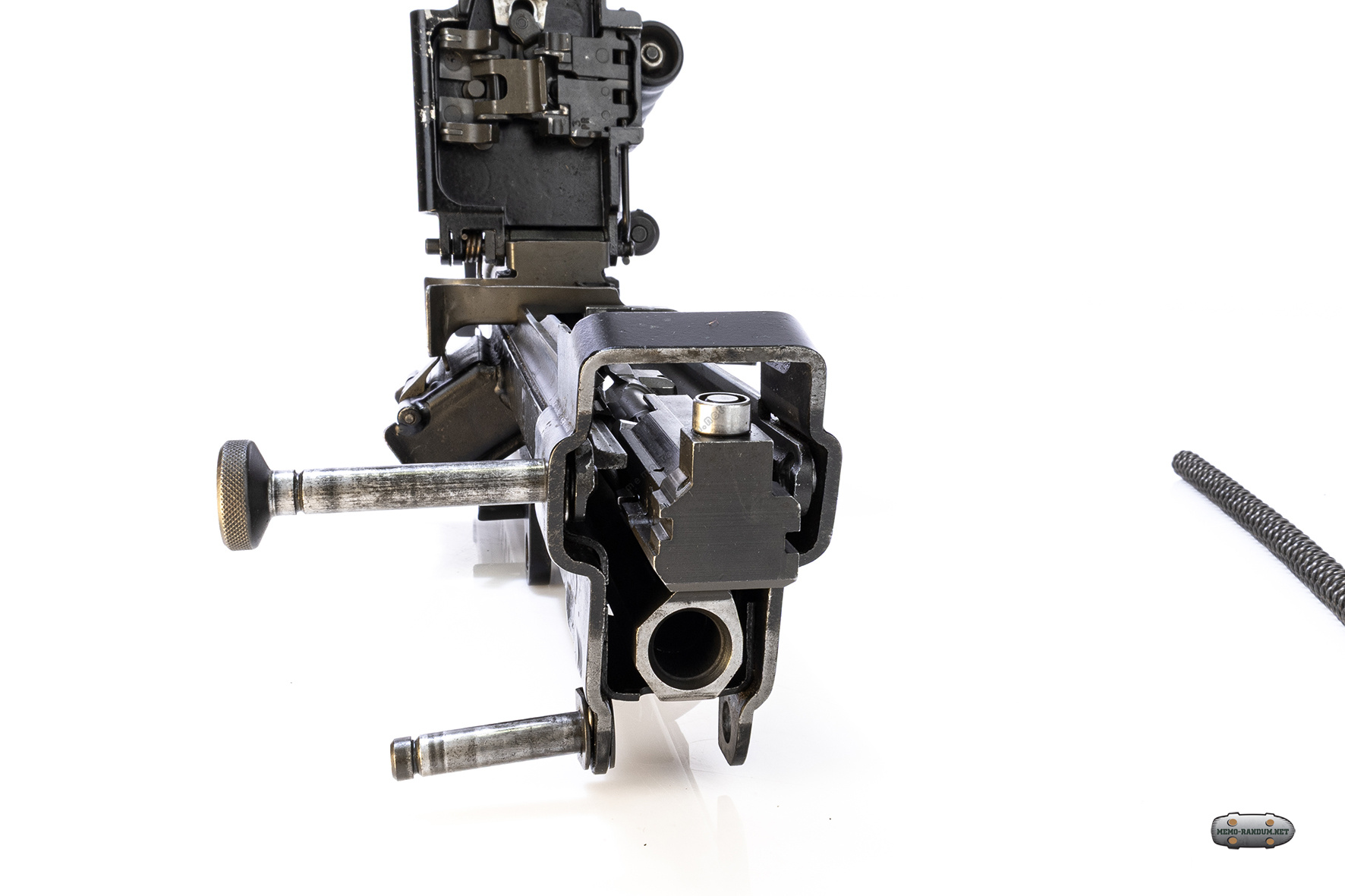 - Быстросменный ствол: Ствол пулемёта можно быстро заменить в полевых условиях. Это необходимо для предотвращения перегрева при интенсивной стрельбе — пока один ствол остывает, стрелок может продолжать бой с другим . Для замены ствола на нём есть специальная рукоятка.