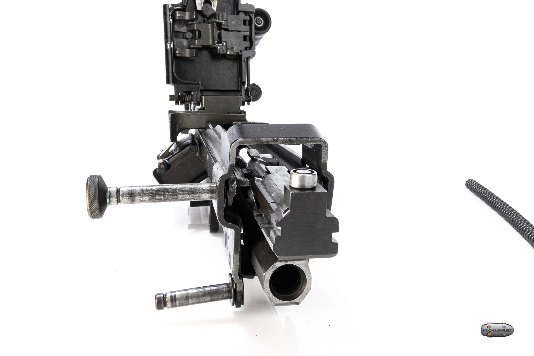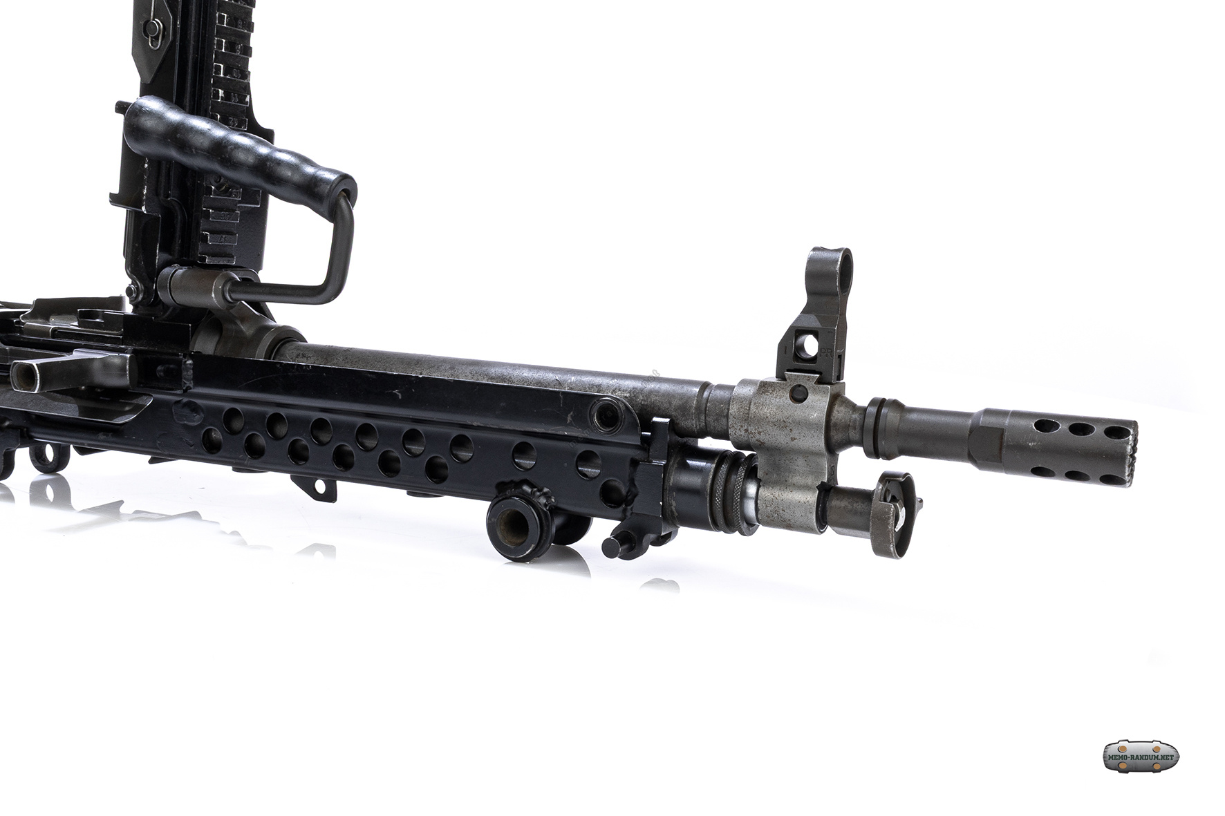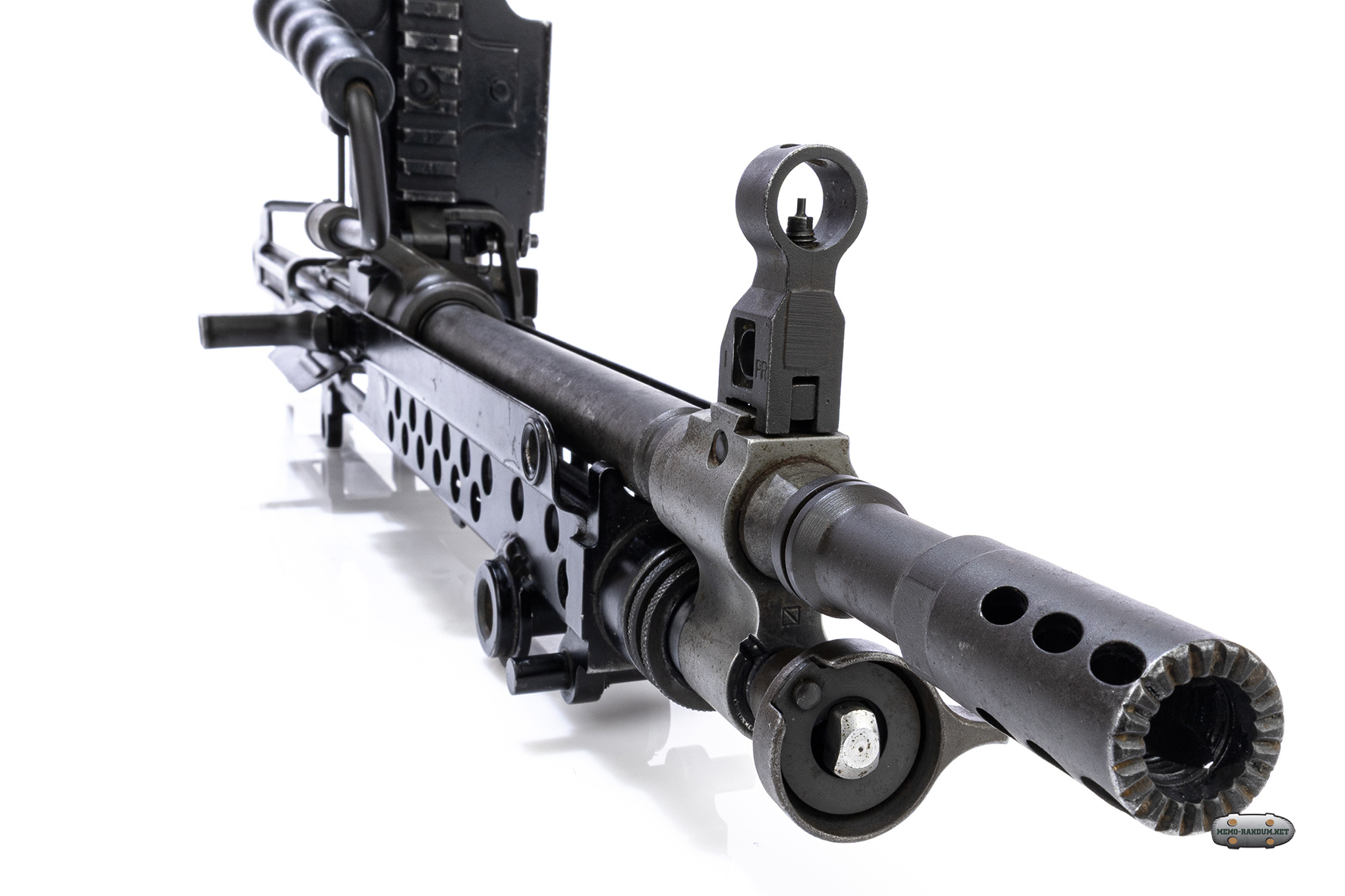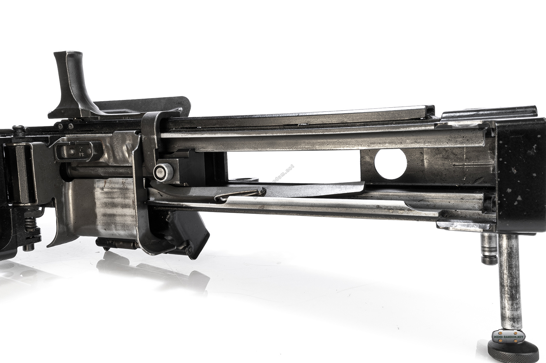 - Быстросменный ствол: Ствол пулемёта можно быстро заменить в полевых условиях. Это необходимо для предотвращения перегрева при интенсивной стрельбе — пока один ствол остывает, стрелок может продолжать бой с другим . Для замены ствола на нём есть специальная рукоятка.