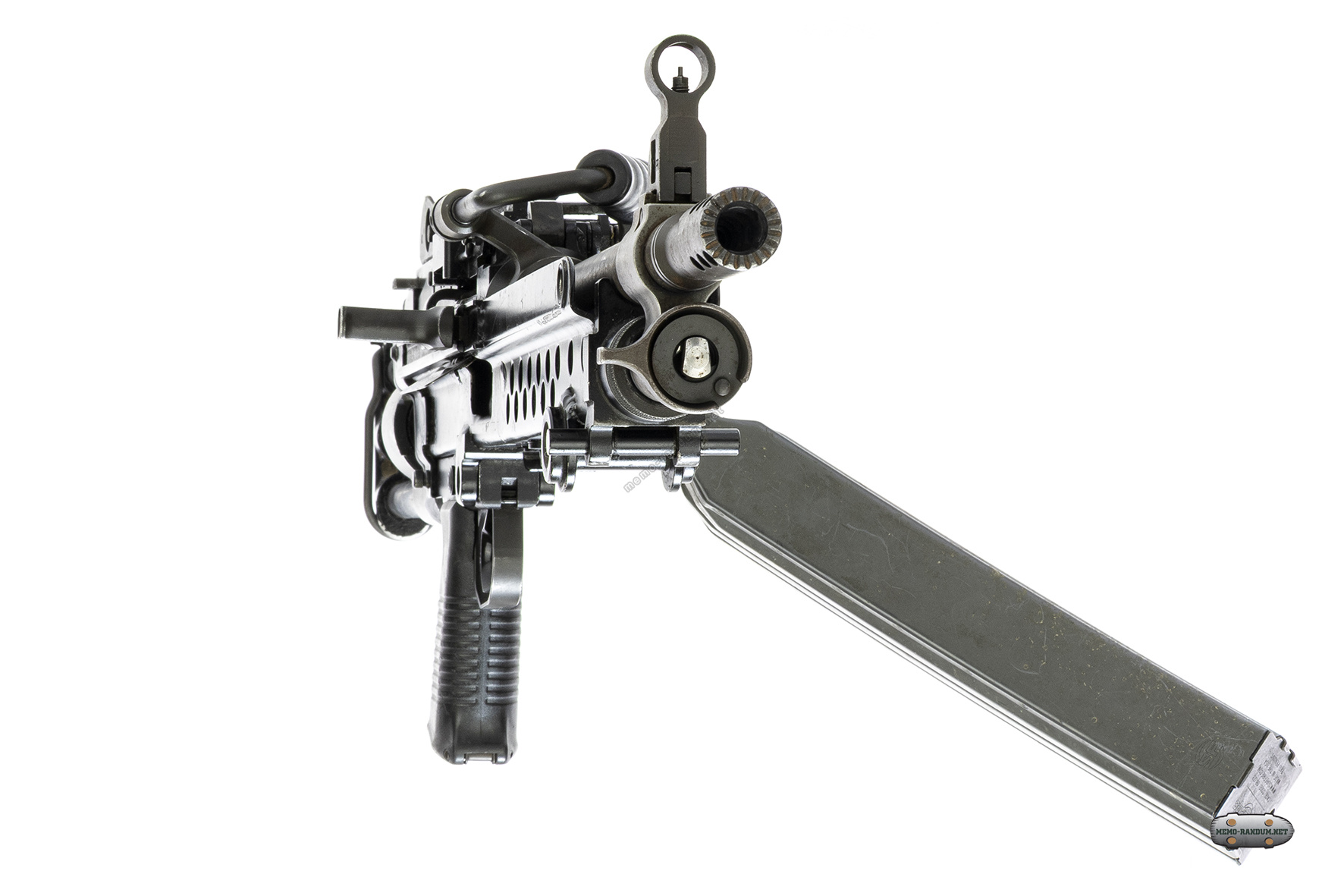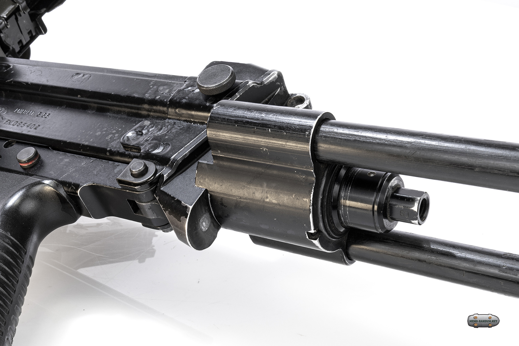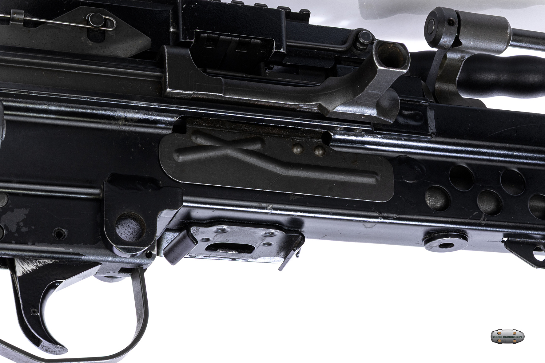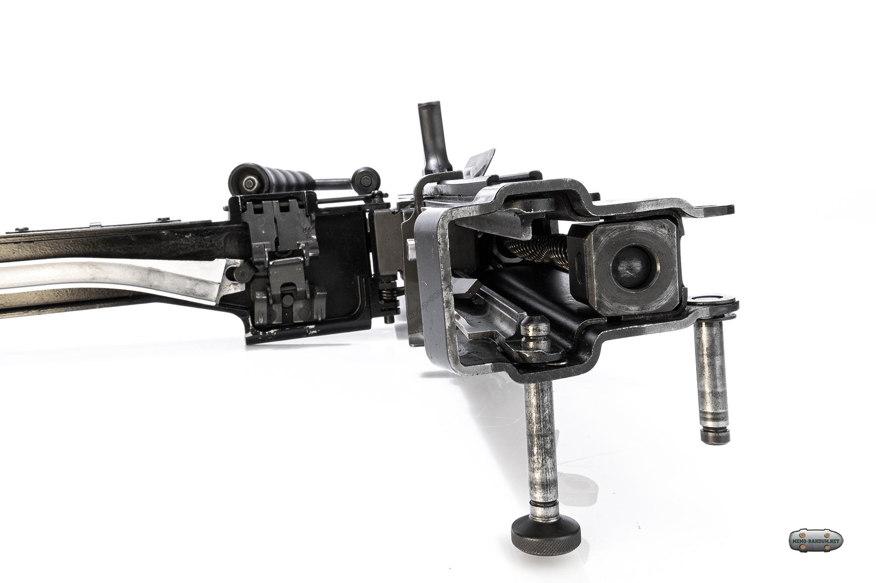 - Быстросменный ствол: Ствол пулемёта можно быстро заменить в полевых условиях. Это необходимо для предотвращения перегрева при интенсивной стрельбе — пока один ствол остывает, стрелок может продолжать бой с другим . Для замены ствола на нём есть специальная рукоятка.