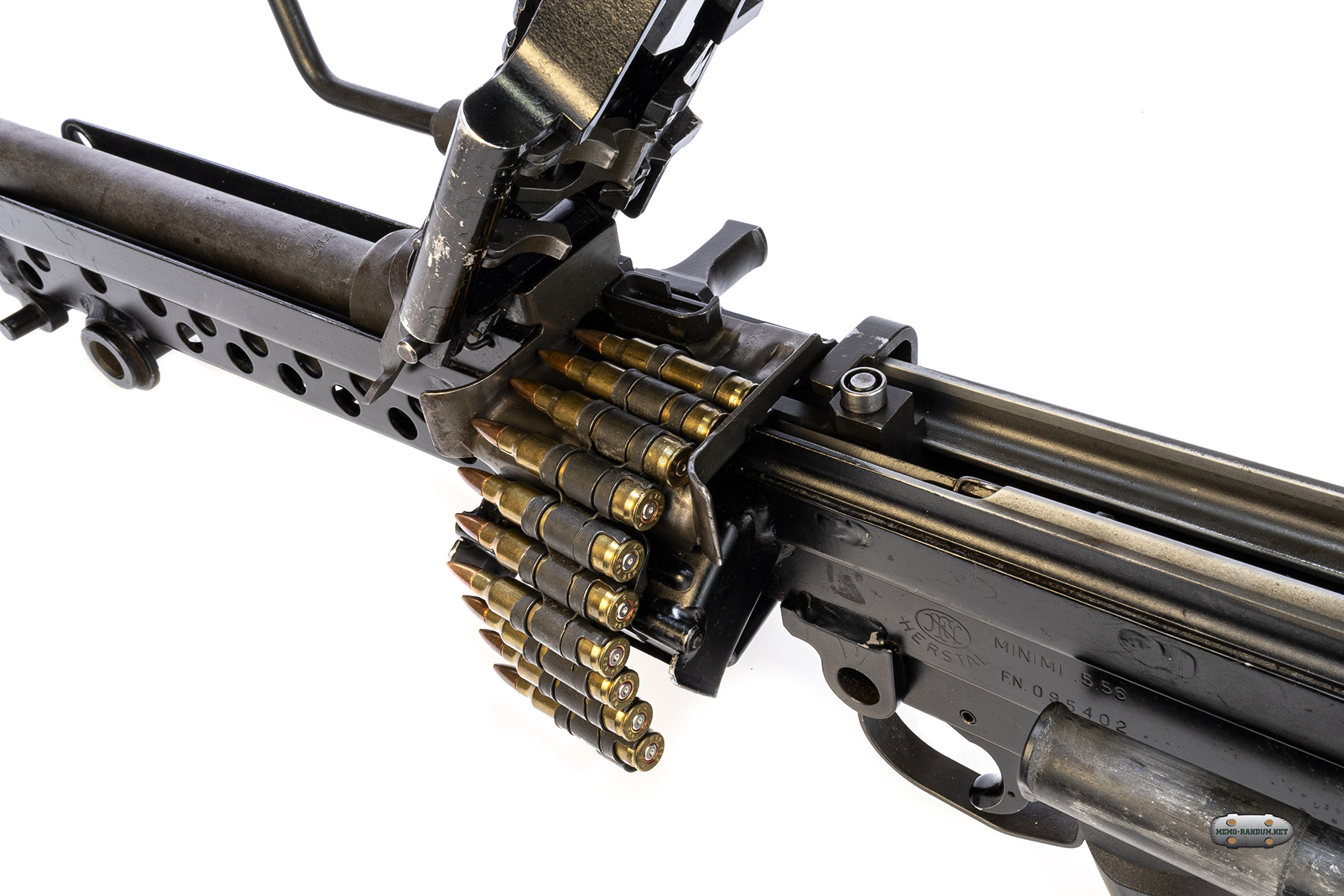 - Стрельба с открытого затвора: Как и большинство пулемётов, Minimi ведёт огонь с открытого затвора. Это улучшает охлаждение ствола и предотвращает самовоспламенение патрона в перегретом патроннике.