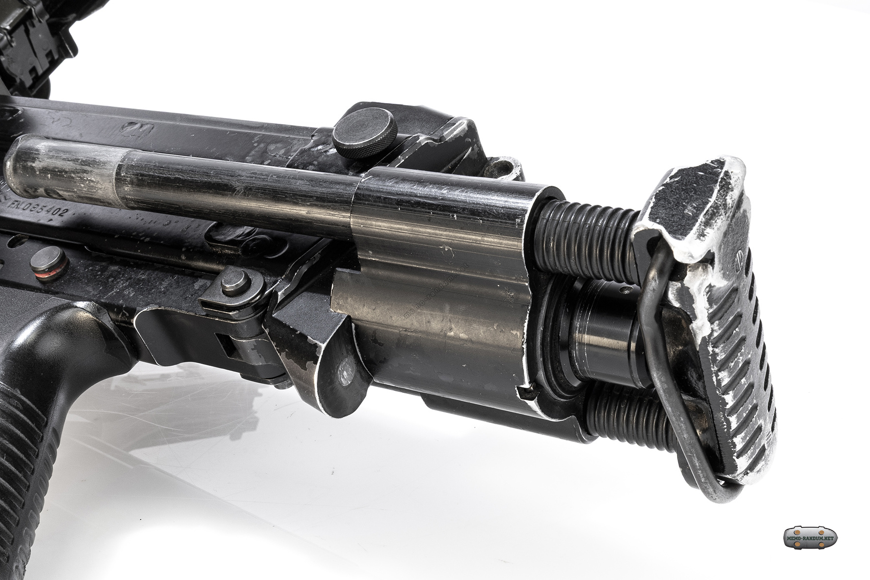 - Регулируемый газоотвод: Имеет двухпозиционный газовый регулятор. Обычное положение используется для нормальных условий, а усиленное — для стрельбы в тяжёлых условиях при сильном загрязнении механизмов.