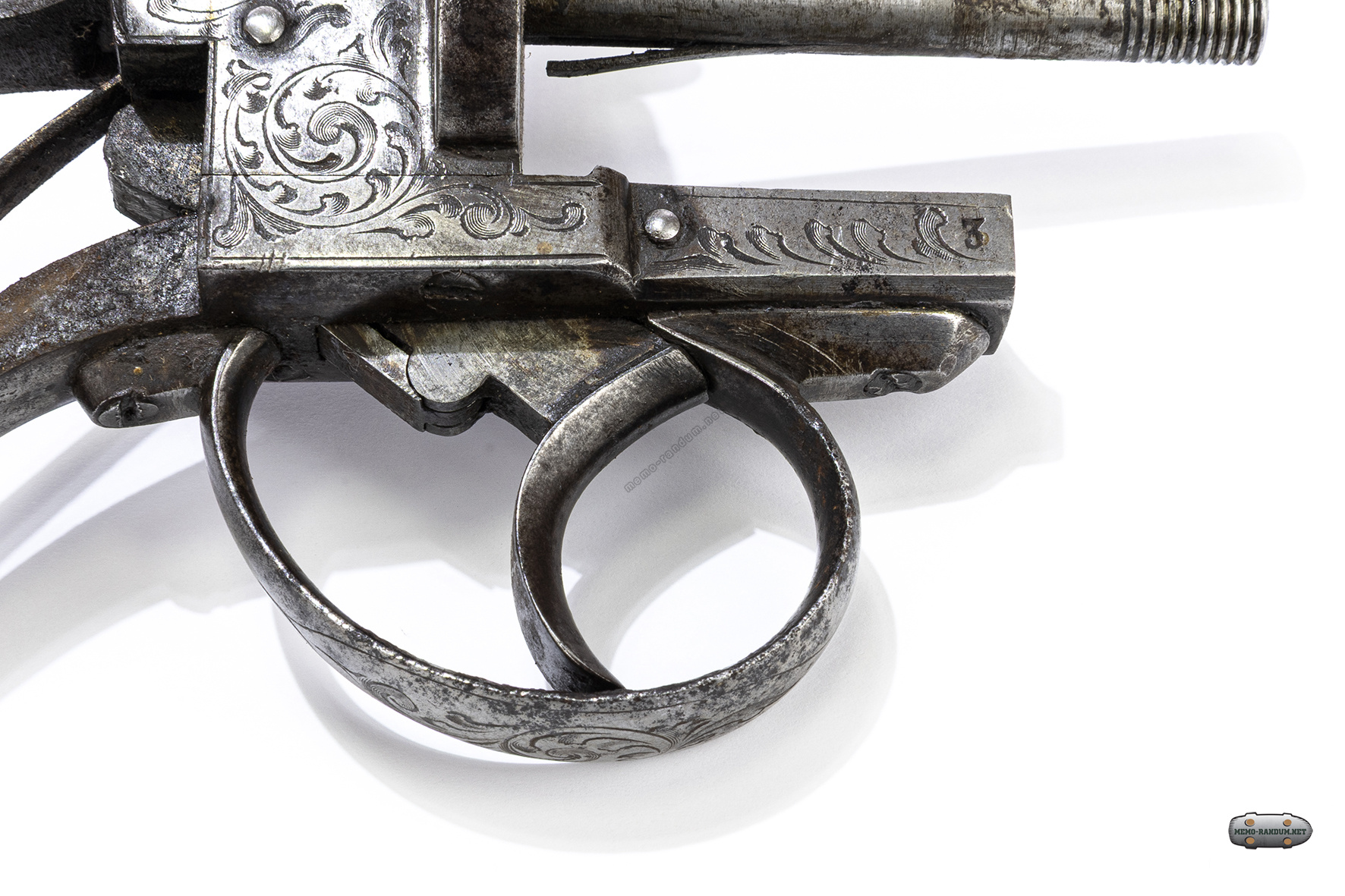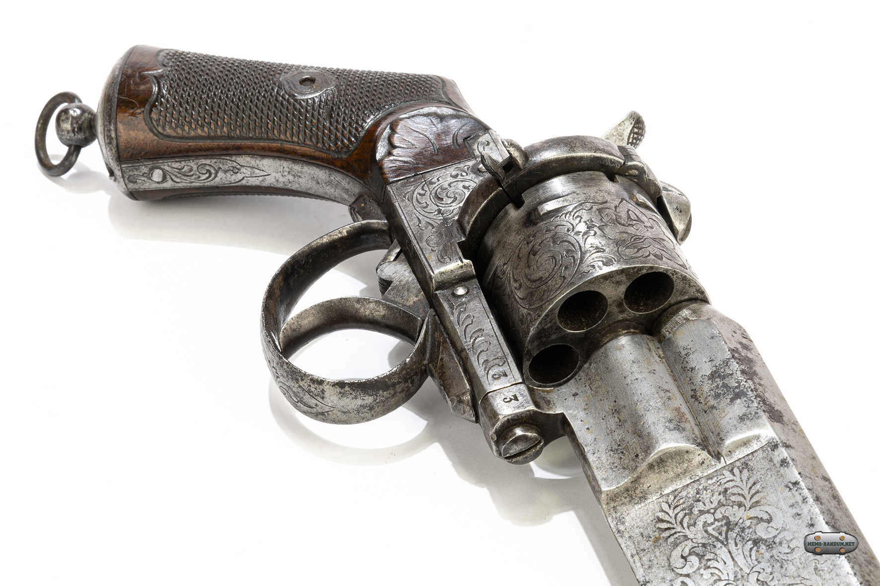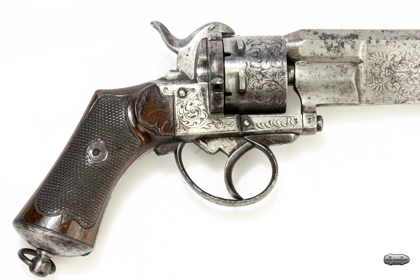 Под клеймом с названием нанесены цифры 210. Обычно на револьверах системы Лефоше серийный номер наносился на нижнюю часть рамки, но начинался от крепления ствола с продолжением на рамку.