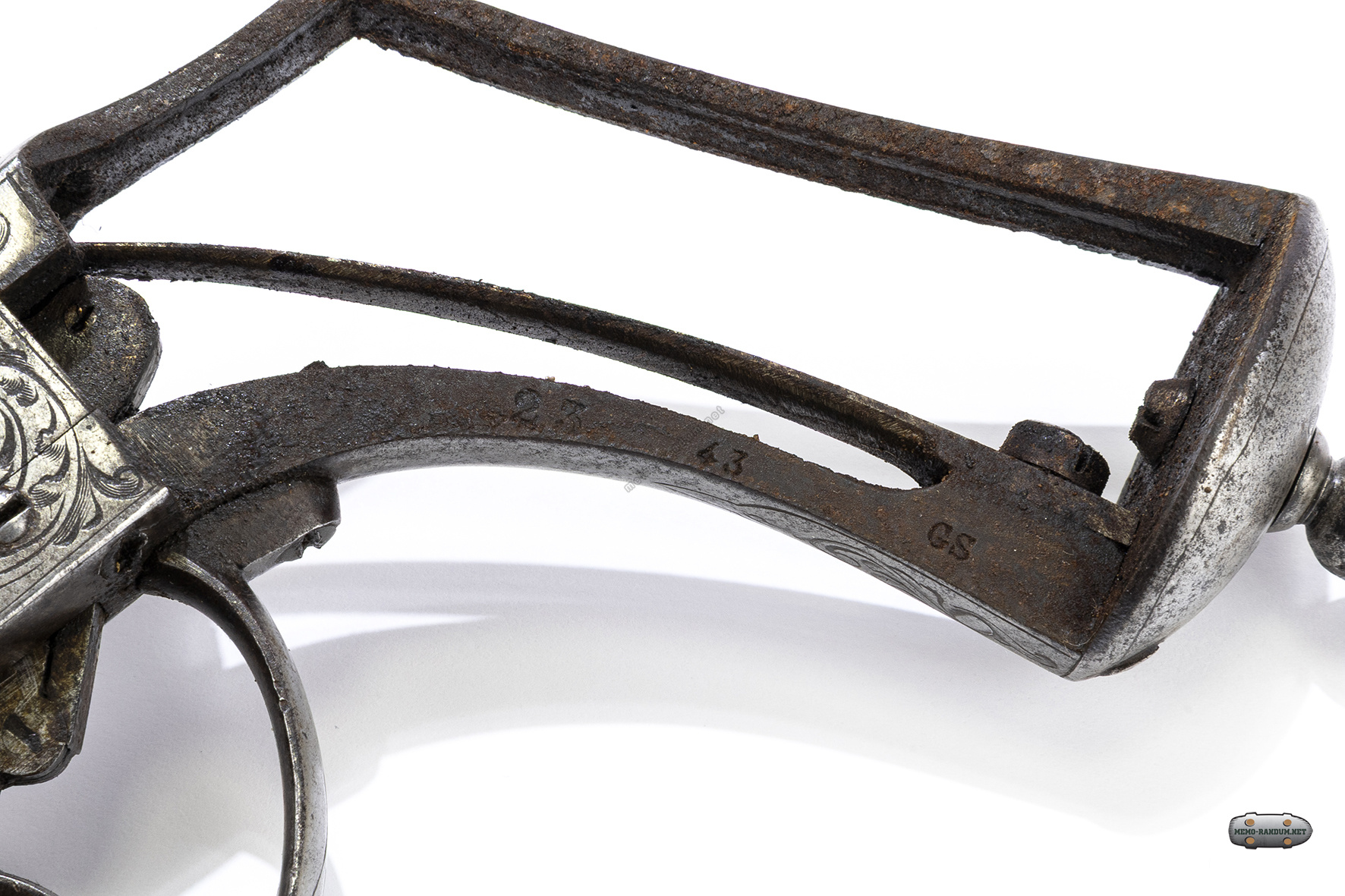 - Декор: Стиль украшений на рамке и барабане не совпадал со стилем на стволе и клинке.